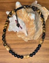 Tigers eye, onyx chakra adjustable necklace with wood accents