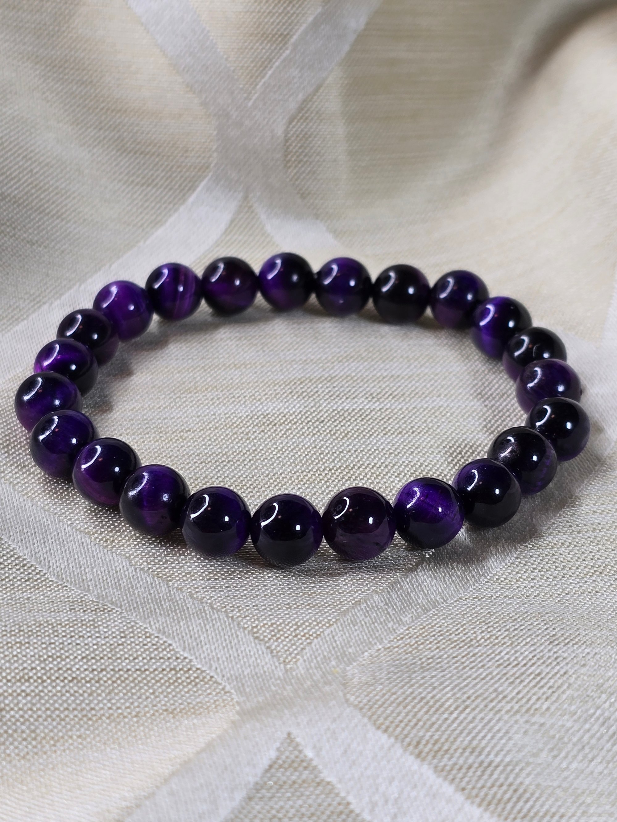Fuchsia Pink Tigers Eye Healing Beaded bracelet and 925 Sterling Silver