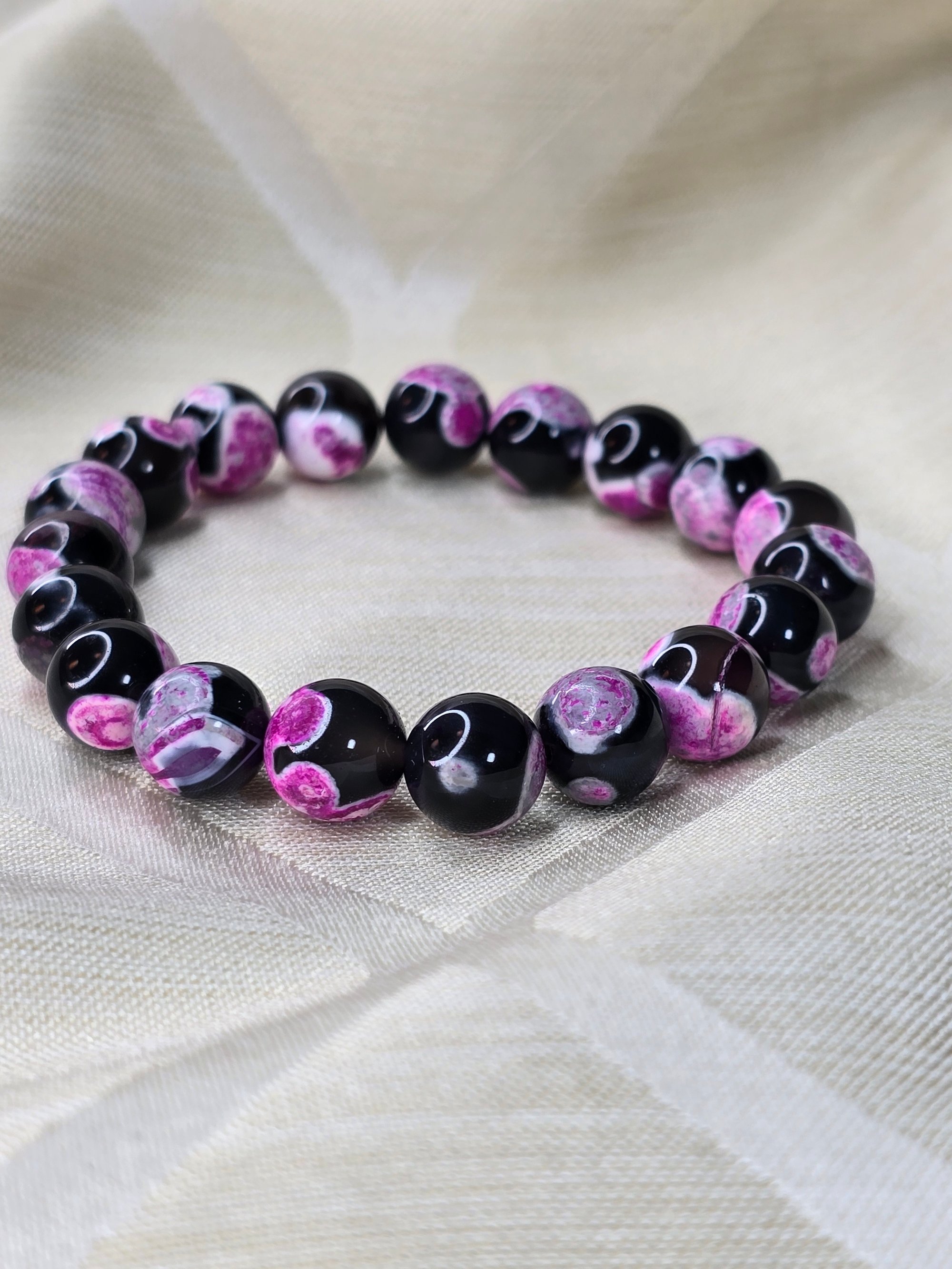 10mm beaded bracelet, reinforced stretch material