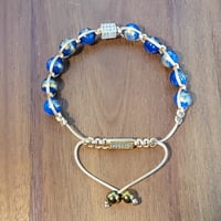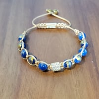 8mm beads with gold diamond like stainless accents. Gold hematite end beads.
